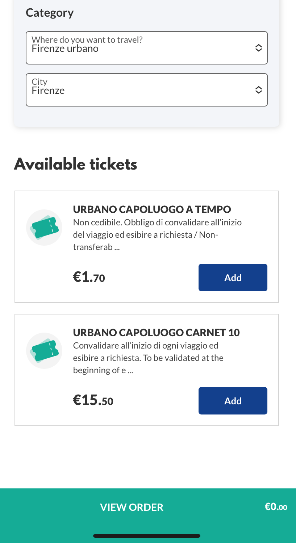 City 는 Firenze이고, Category에서는 'Firenze urbano'를 눌러주면 두번째 사진처럼 구매 가능한 티켓이 나옵니다.