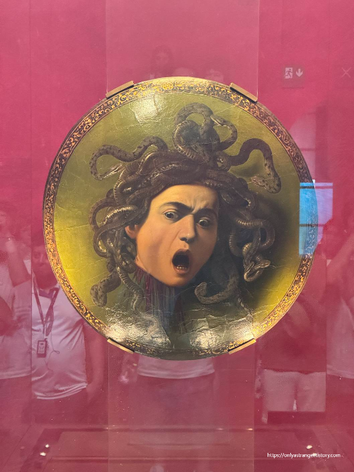 바로크 시대를 대표하는 카라바조의 작품들. 투어라이브를 들으며 인상깊었던 메두사 작품. 사실 메두사 자신도 괴물로 변한 자신을 처음 마주해야 했던 순간이라 목이 떨어지는 아픔 이전에 자신의 모습에 충격받은 건 아닐까라는 설명이 와닿았다.
