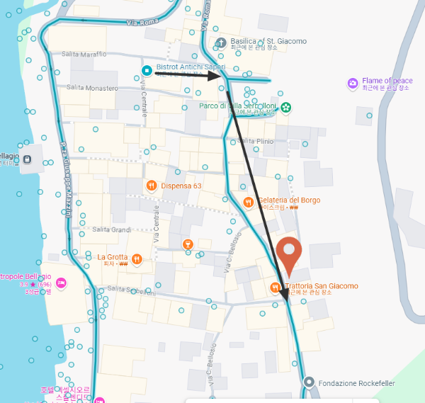 우리는 벨라지오 내에서 생각해 둔 일정은 점심 식사밖에 없었다. 워낙 작은 마을이라 마을을 돌며 구경하려는 생각이었기 때문이다. 그런데 사실 우리 운이 벨라지오에 도착한 후부터 하향가를 쳤다. 그래서 안타깝지만 벨라지오 마을 내에선 사진이 별로 없다.