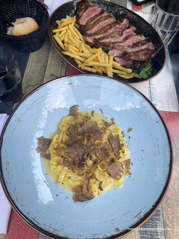 우선 양은 둘이 먹고 충분히 배부른 정도였고 특이한 점은 고기 메뉴와 파스타 가격이 거의 같았던 거 같은데 트러플이 정말 미친 듯이 많았기 때문에 납득가능한 가격이었던 거 같다.