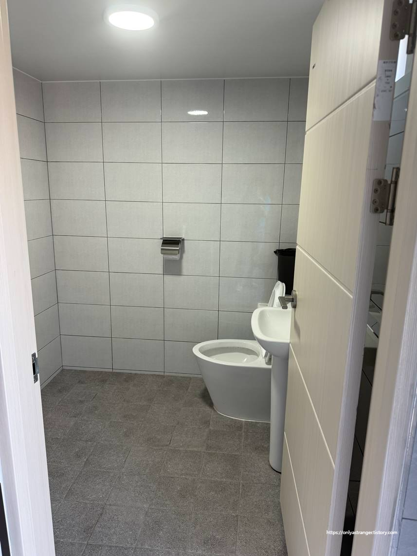 위의 사진처럼 개별 개수대와 화장실 부분이 아예 문으로 분리되어 있는데 보통 개별 화장실이라고 해도 화장실 내에 개수대가 같이 있어 물이 다 튀고 씻고 나오면 엄청 습한데 여기는 아예 독립적으로 이용이 가능해서 좋았다!