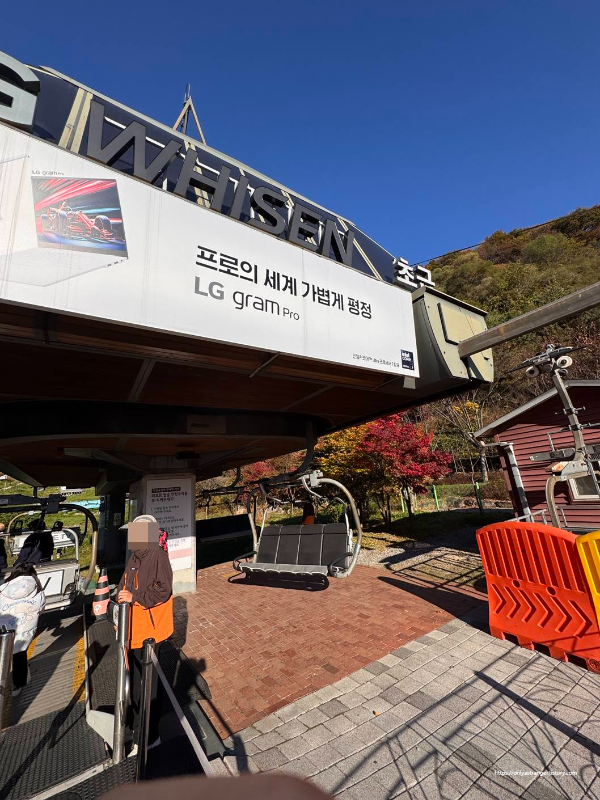 우리가 탈 때는 이렇게 리프트 줄이 아예 없어서 바로 탈 수 있었으나, 12시 반 이때는 줄이 엄청 길었다. 주차와 입장 전까지 이동을 위해서 적어도 1시간 전에는 도착하는 걸 추천한다.