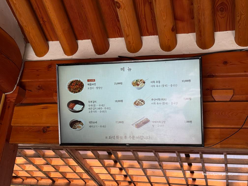 번지 없는 주막이 이름인 것처럼 주막 컨셉의 음식들이 있었는데 파전냄새가 대박이었다. 가격대는 좀 있는 편이지만 시간 여유가 되고 자리가 있다면 해물파전과 두부김치를 추천한다. 우리가 갔을 때에는 12시 전후여서 이미 자리가 꽉 차고 대기를 해야 할 것 같아 패스했지만 해물파전 냄새는 정말 찐이었다.