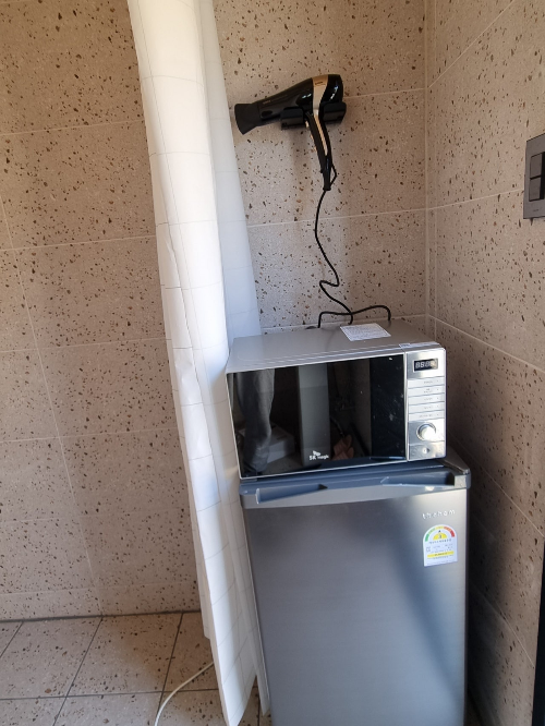 월강캠프 개별화장실의 가장 큰 장점은! 화장실 내에 구비된 히터? 개수대가 위의 사진의 오른쪽 전자레인지 자리 옆 쪽으로 있는데 이 개수대 위에 작은 히터 같은 게 있다. 가을, 겨울만 되어도 개별화장실은 큰 건물이 아니라 아무래도 추운데 이 히터가 있어서 샤워할 때 춥지 않고 잘할 수 있었다. [아이가 있는 집이라면 이 히터가 있고 없고 차이가 정말 클 거라고 생각한다]