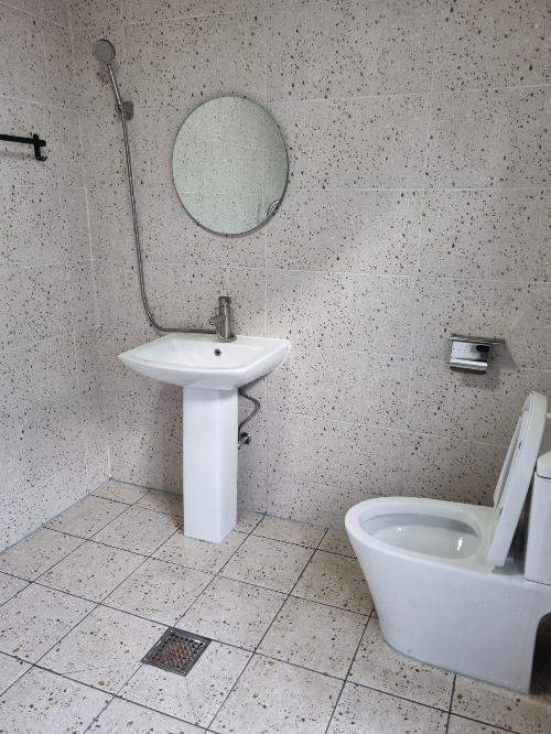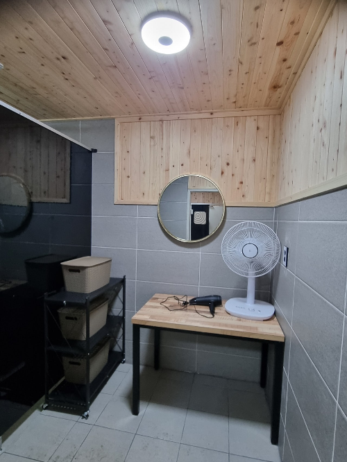 공용 샤워실 내부는 이렇게 되어 있는데 한쪽에 샤워 후 머리를 말리고 정리할 수 있는 공간이 있어 편리했다. 샤워실은 화장실에서 들어가는 문이 있어 뭔가 안전한 느낌이 든다. 가을, 겨울에도 그나마 화장실 안쪽에 샤워실이 위치하다 보니 찬 바람이 바로 들어오는 곳이 아니라서 덜 추웠고 따뜻한 물도 잘 나왔다.