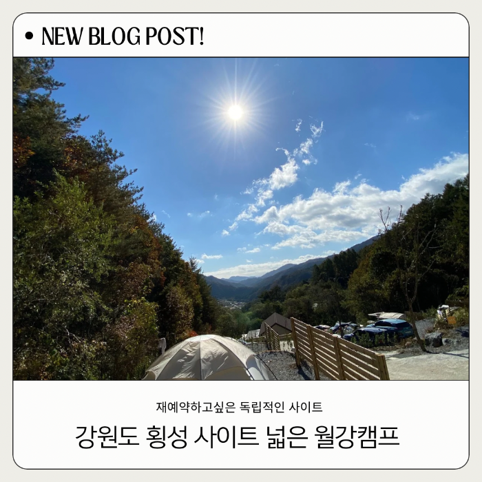 사장님께서 전에 운영하셨던 캠핑장에서부터 알게 되어 다녀왔던 횡성에 위치한 월강캠프는 작년 10월에 다녀오고 만족도가 높아서 올해 4월에도 다녀왔었던 캠핑장이다. 강원도의 많은 곳 중 서울에서 비교적 멀지 않고 개별사이트와 공용을 병행해서 선택지가 넓은 캠핑장이라 올해 말에도 다시 가보려고 하는 캠핑장이다. 월강캠프의 위치와 공용사이트와 개별사이트 모두 이용해 본 후기, 주변 카페 추천까지 해보려고 한다.