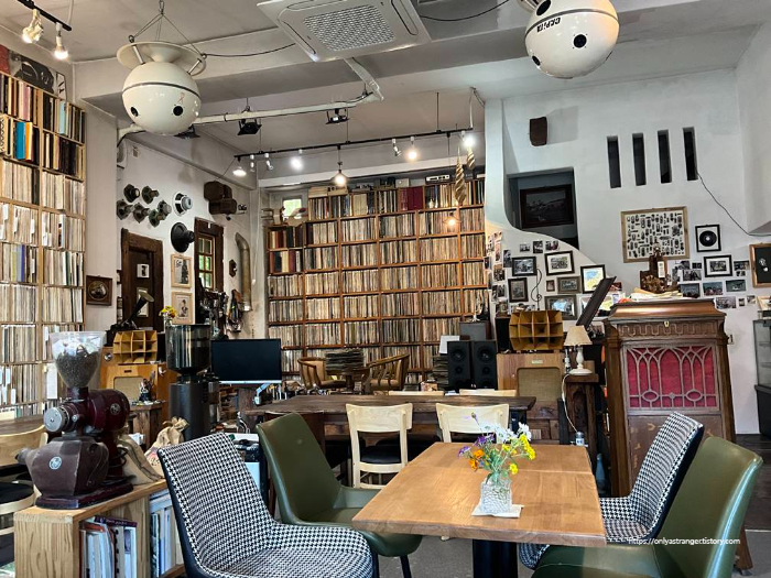 건물 내부는 사장님의 취향이 한껏 묻어있는 그런 공간으로 가득하다. 여행도 좋아하시고, 음악을 엄청 좋아하셔서 항상 LP를 턴테이블에 넣어 노래를 틀어주신다. 벽 두 쪽이 모두 다 LP인데 가요도 있고 클래식도 있다.