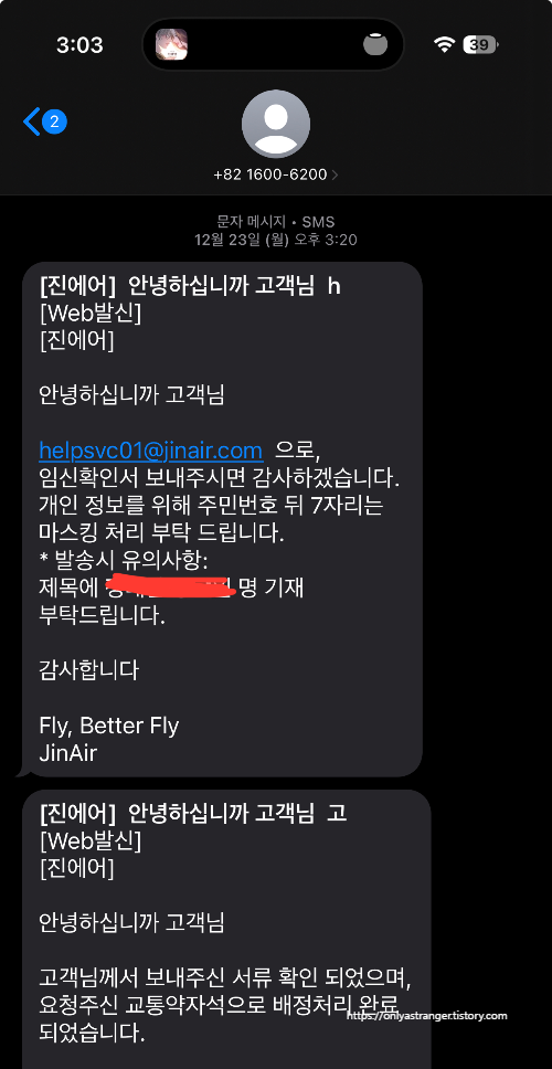 며칠을 기다려도 확인 문자가 오지 않는다면 다시 한 번 고객센터에 문의하는 게 좋겠죠?