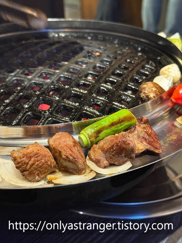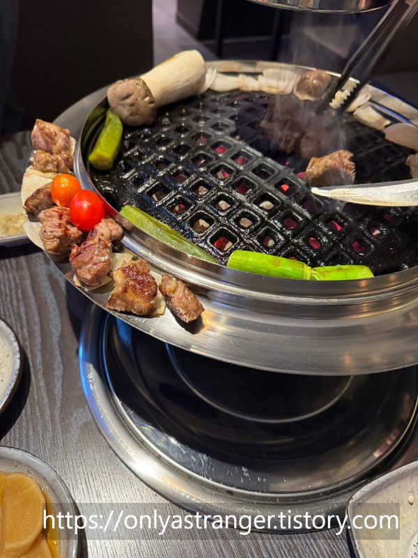 고기는 직접 오셔서 구워주셔서 편하다. 처음엔 저 굽는데 옆 부분이 왜 있나 했는데 구운뒤에 더 타지 않게 저기에 올려두신다.
