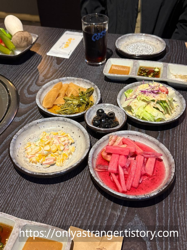 전반적으로 서비스도 매우 만족! 우선 직접 구워주시는데 고기 질이 좋기도 하지만 굽기 역시 만족스러웠고, 오버쿡되지 않게 옆으로 빼두시는데 야채를 두고 그 위에 고기를 올려주셔서 같이 먹기도 좋았다.